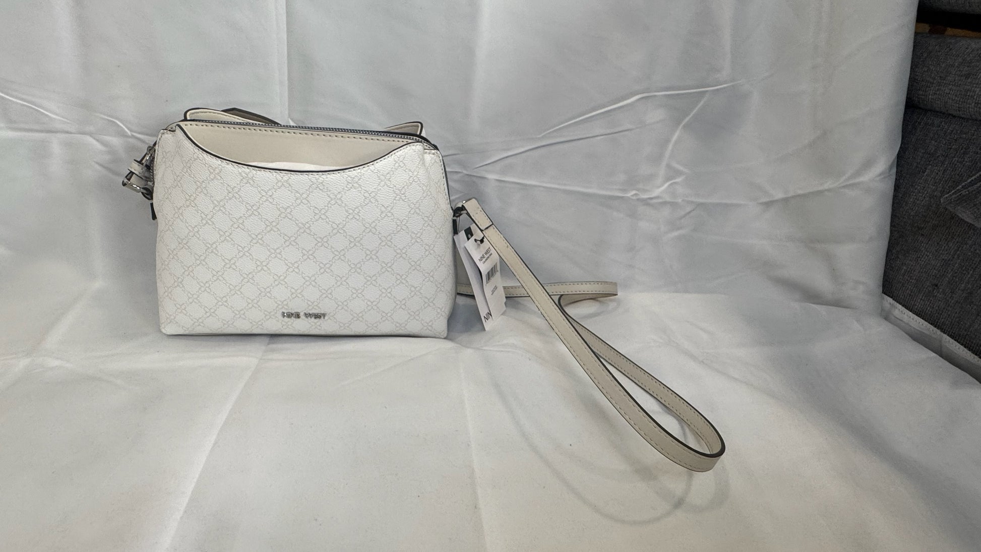 Bolso tote de Nine West con diseño refinado y estampado monogramado sutil que realza su elegancia. Presenta asas resistentes para llevarlo al hombro o de mano, amplio espacio interior para lo esencial del día a día y acabado pulcro con estética moderna, ideal tanto para la oficina como para un look urbano estilizado.
