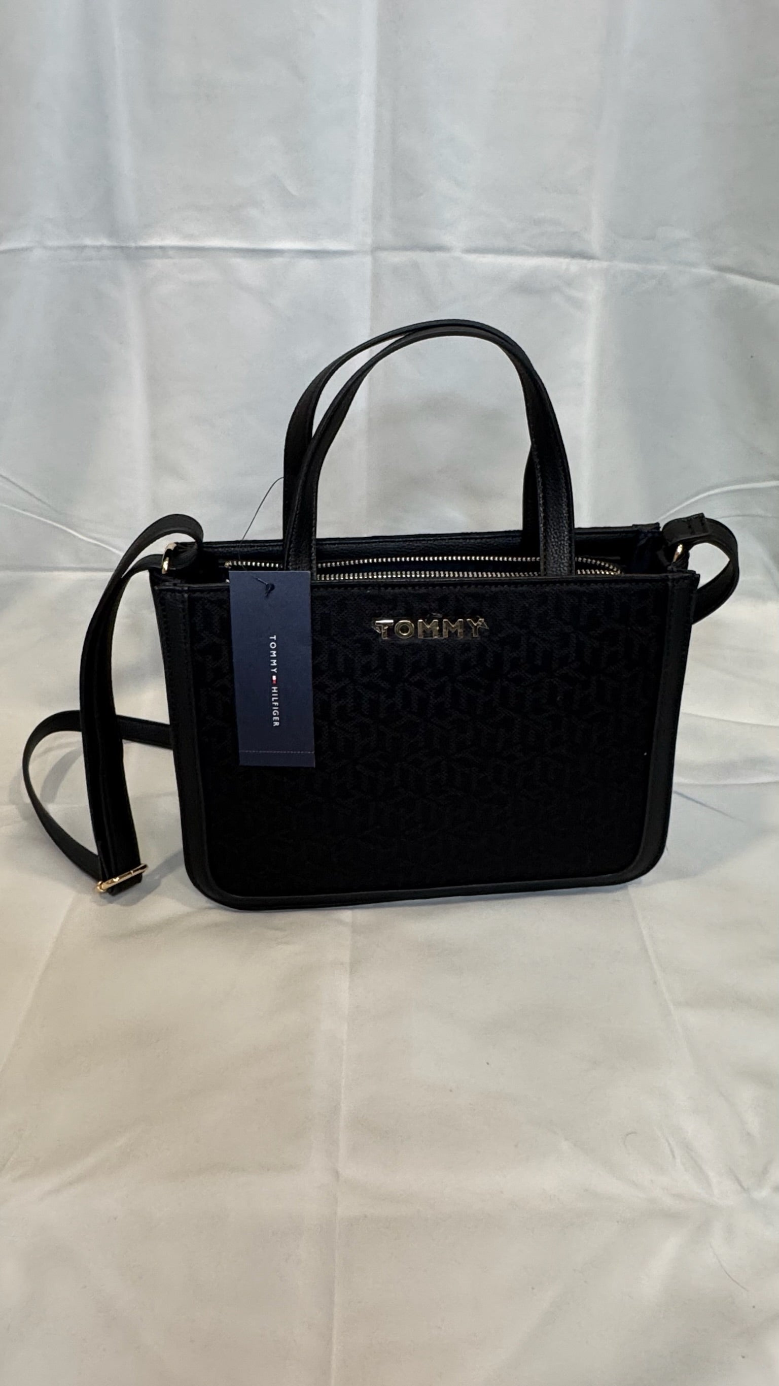 Bolso tote de Tommy Hilfiger con diseño refinado y detalles monogramados icónicos. Cuenta con asas resistentes para llevar de mano o al hombro, acabado sofisticado y gran capacidad para el día a día. Ideal para quienes buscan estilo y funcionalidad en un accesorio urbano con presencia.