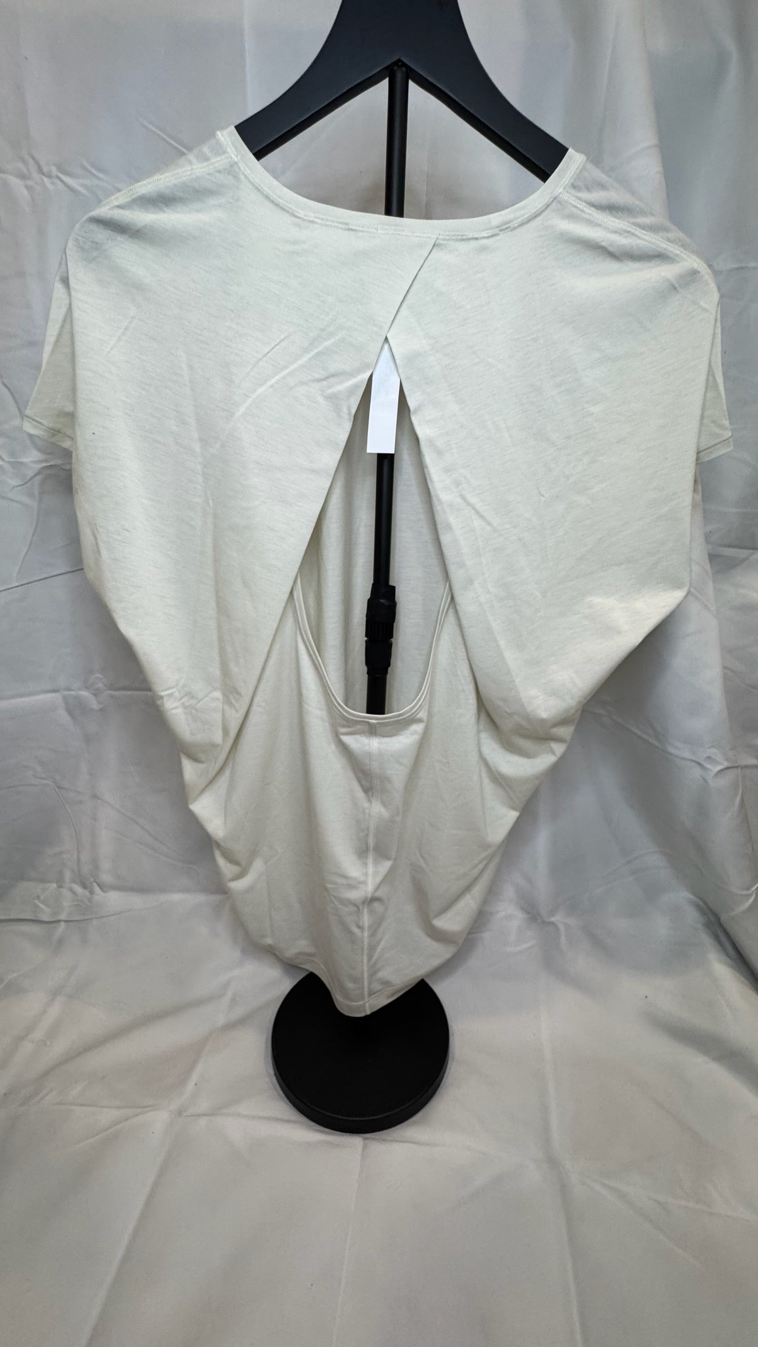 Playera ligera de entrenamiento con diseño abierto en la espalda y caída curva. Ideal para entrenar con libertad y estilo.