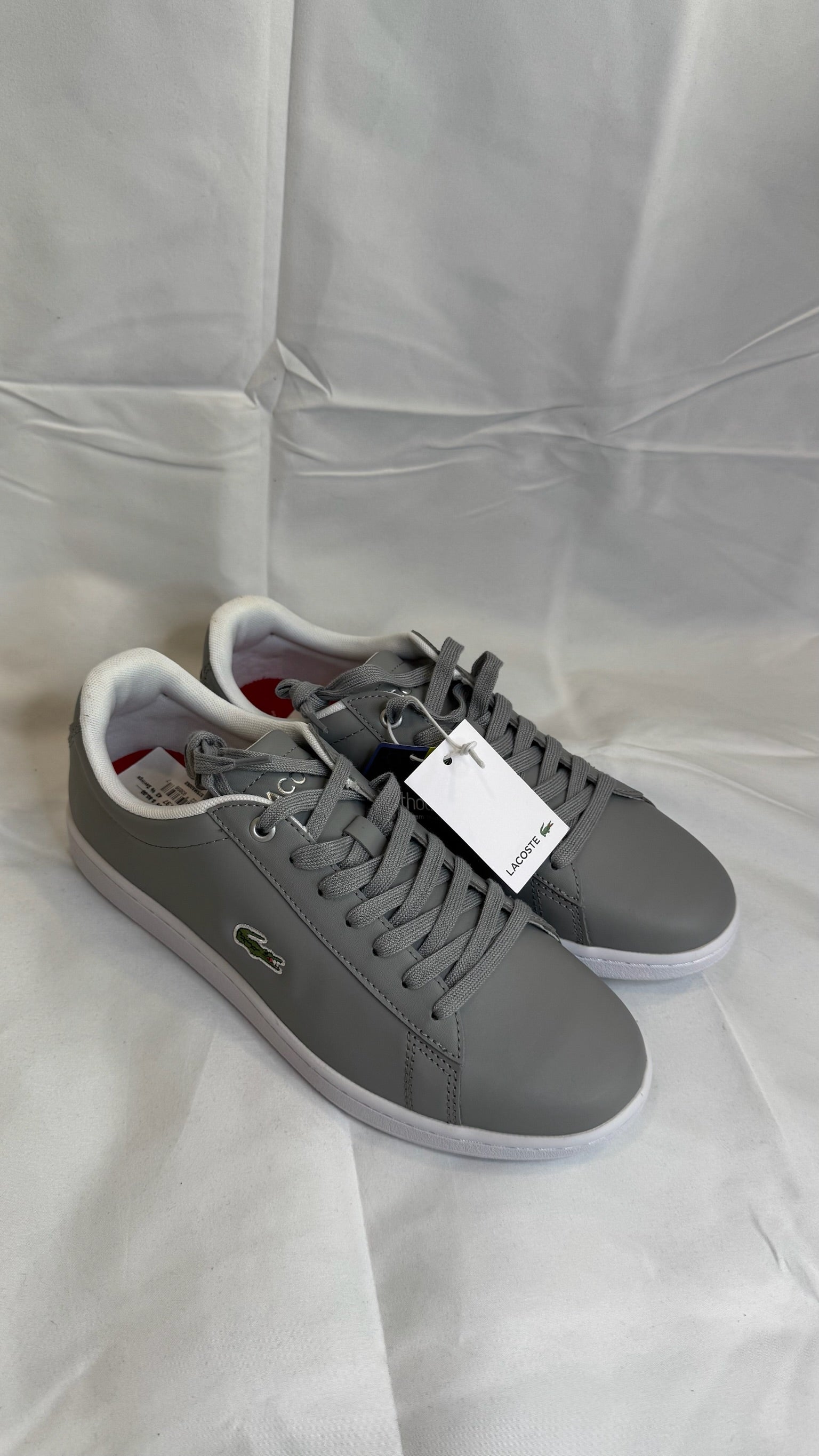 Eleva tu estilo con la elegancia deportiva de Lacoste. Estos tenis en tono gris, confeccionados en piel sintética premium, ofrecen comodidad y durabilidad para el uso diario. Su diseño minimalista con el icónico logo del cocodrilo bordado en el costado los convierte en un básico versátil que combina con cualquier outfit casual o smart-casual.