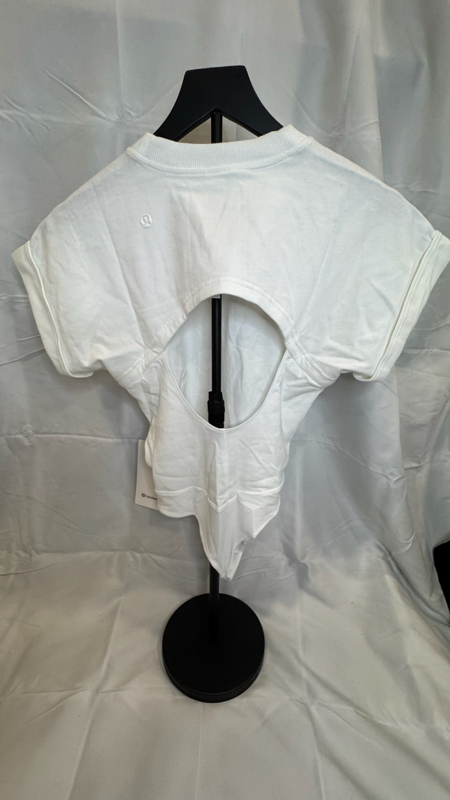 Cropped top blanco con manga doblada y abertura redonda en la espalda. Comodidad y estilo para entrenar con frescura.
